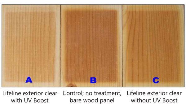 When added to the first coat on bare wood of any Lifeline wood finish, UV Boost combines with the lignin to delay the wood beneath the stain from graying. Since the concentration of the active components differ, be sure to use the appropriate size for the amount of stain or finish you are using.